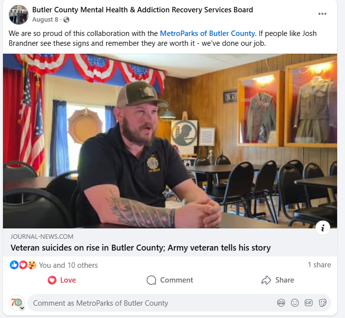 MetroParks of Butler County’s Suicide Prevention Sign Campaign
